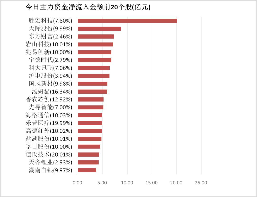 沪深300今日主力资金净流入39.99亿元,创业板净流入14.97亿元,科创板净流出42.63亿元。